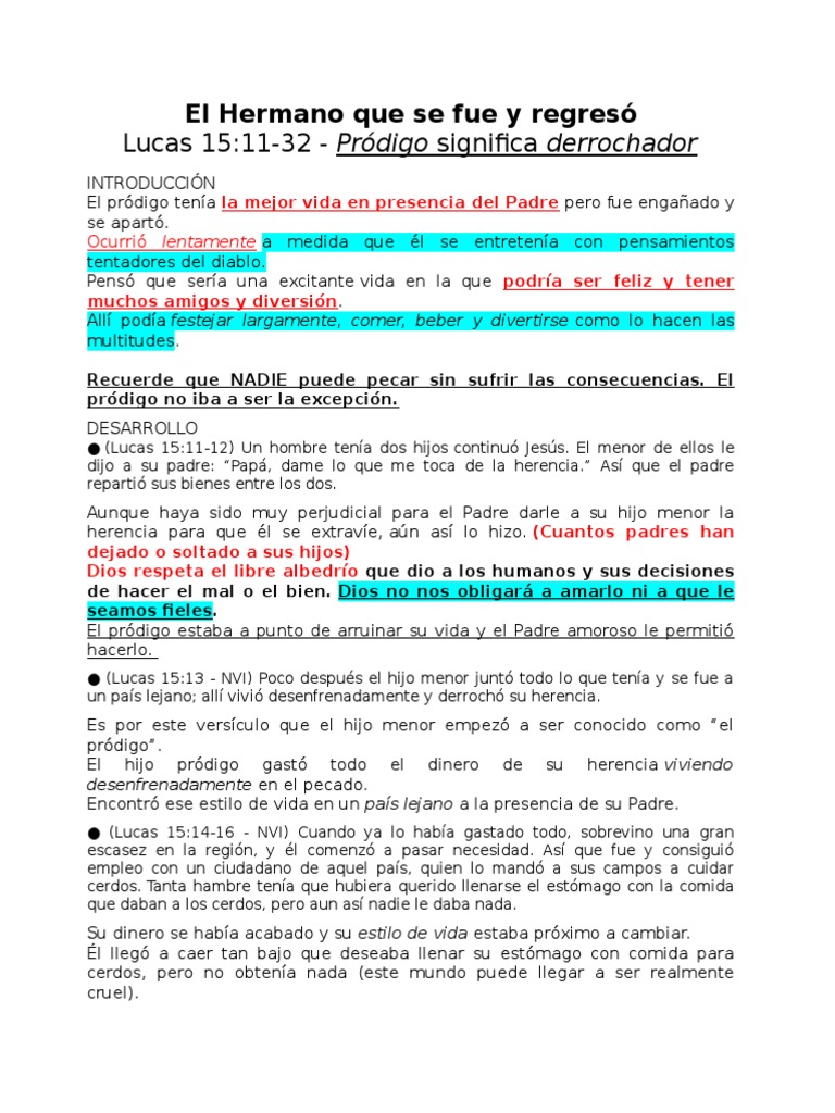 Pero los amaba a los dos. Ya no soy digno de ser llamado hijo tuyo. Con nuestras acciones a veces nos Separamos de Dios. Expone plenamente lasriquezas de.